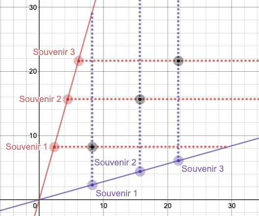 Now remember that to graph the inverse function when we were buying souvenirs at the market in , we swapped the x and y coordinates. That is, we switched the input and output. Let's do that same thing in the inverse function.