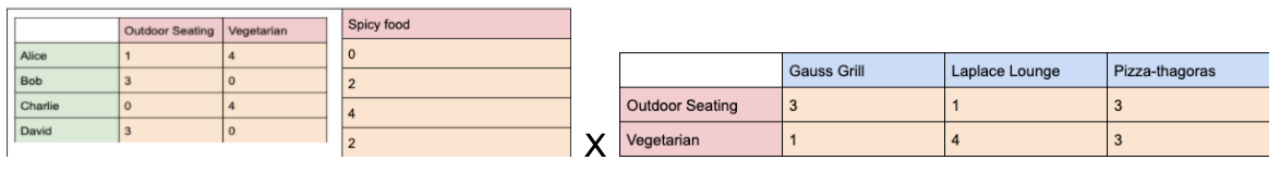 For example, if in our restaurant example, each friend had a preference level for spicy food, our preference matrix would be