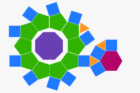 Here you can create your own tessellations using regular polygons. Simply drag new shapes from the sidebar onto the canvas. Which shapes tessellate well? Are there any shapes that don’t tessellate at all? Try to create interesting patterns!