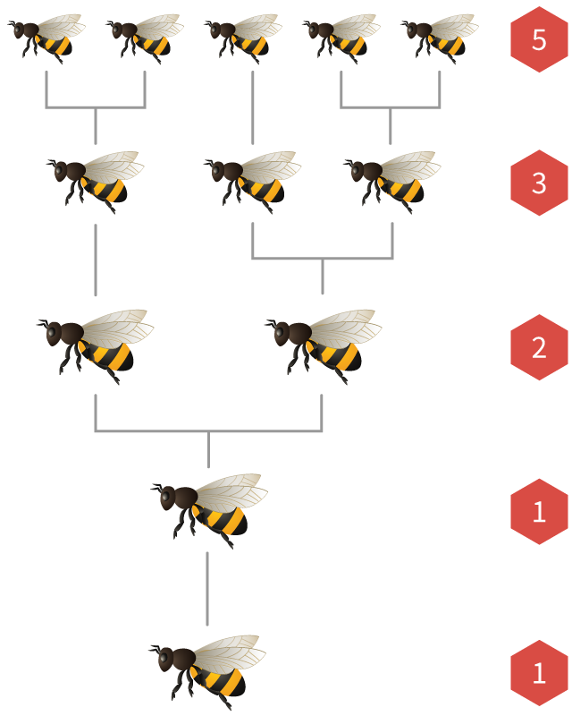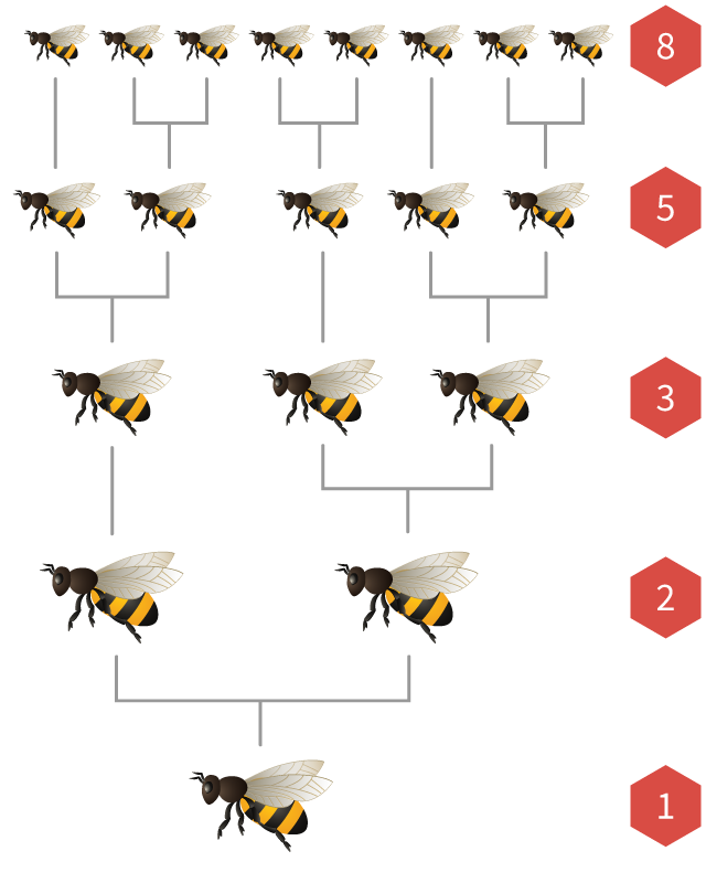 If we draw the ancestry tree of a bee, the number of parents, grandparents, great-grandparents, and earlier generations are always Fibonacci numbers!