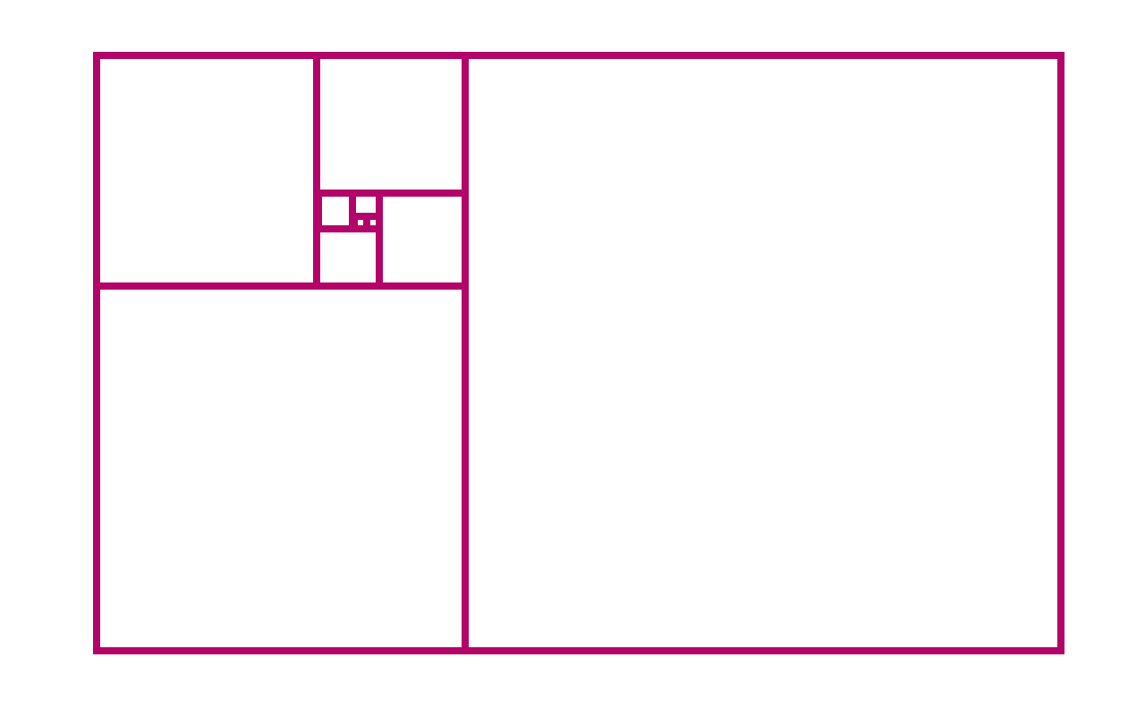 Notice how, as we add more and more squares, the aspect ratio seems to get closer and closer to a specific number around 1.6. This number is called the