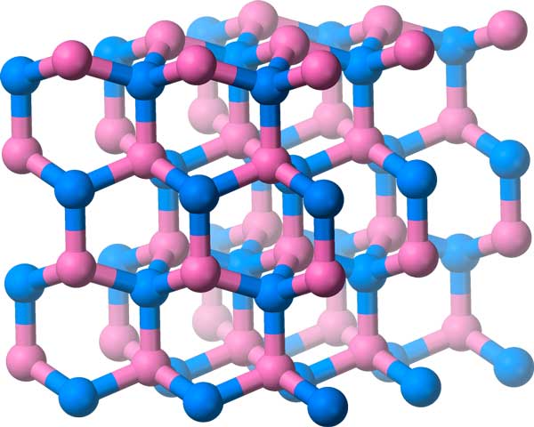 Boron-Nitride has its molecules arranged in this crystal lattice, which has a three-dimensional symmetry group.