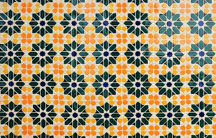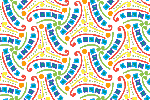 These groups don’t tell you much about how the pattern looks like (e.g. its colours and shapes), just how it is repeated. Multiple different patterns can have the same symmetry group – as long are arranged and repeated in the same way.